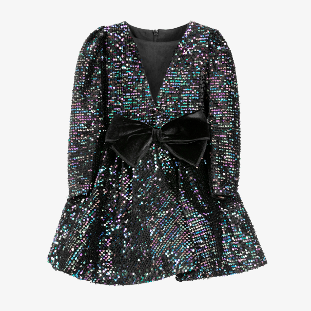 Our unique sequin dress is a perfect choice for your young fashionista who loves a touch of sparkle and elegance. The combination of sequins and a velvet bow creates a beautiful contrast, capturing the essence of glamour and sophistication, perfect for that special occasion.