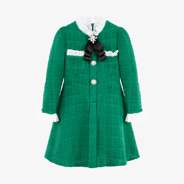 Our adorable A-line dress with pleated trims on the wrist and a bow with a detachable pendant on the neck, is a perfect blend of elegance and playfulness. It adds a delightful detail that will make your little one stand out.